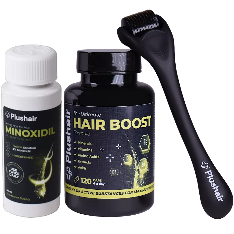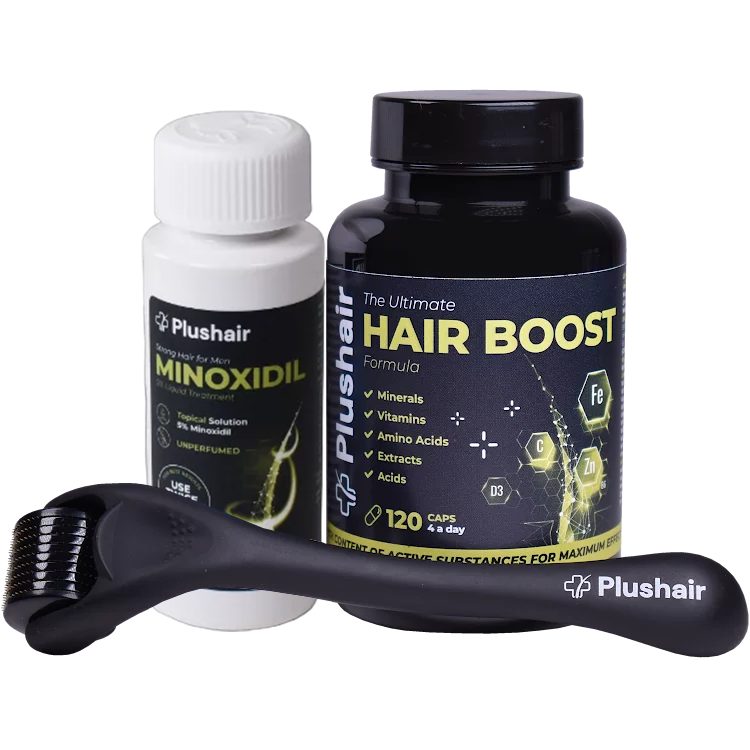Set Minoxidil Plushair + Vitaminas + Dermaroller - por 1 mes
